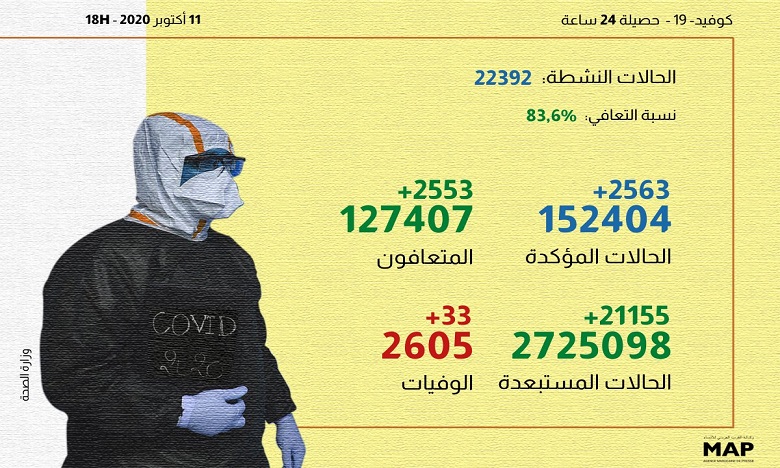 كوفيد-19: 2563 إصابة جديدة و2553 حالة شفاء و33 وفاة خلال 24 ساعة الماضية